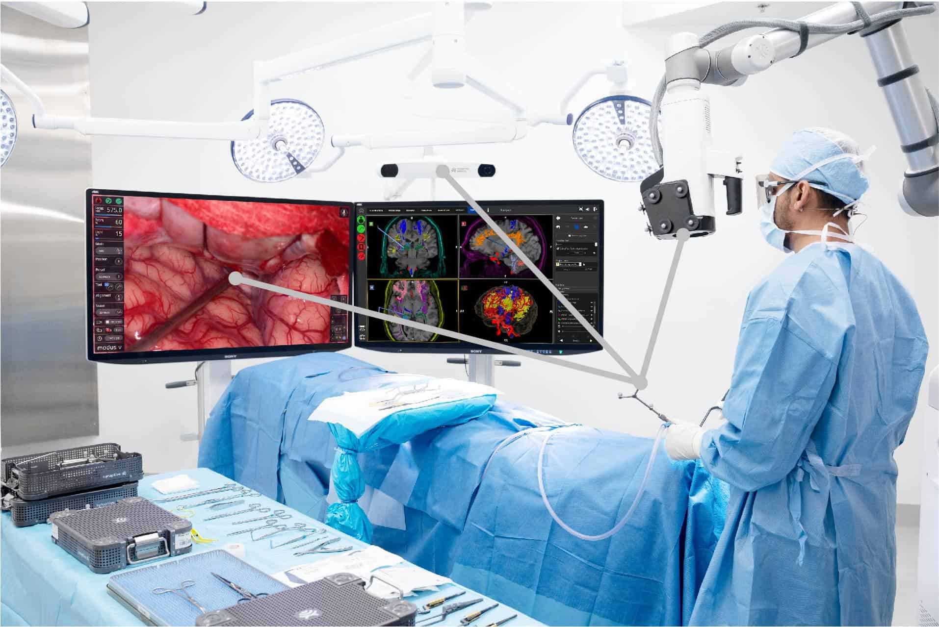 Průlomová technologie digitální mikrochirurgie. Synaptive Modus X kombinuje robotické rameno, 4K 3D optiku a automatizaci pro revolutionizaci vizualizace během neurochirurgických a spinálních výkonů s prokazatelně lepšími klinickými výsledky.